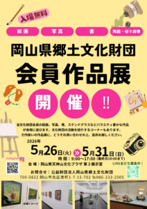 岡山県郷土文化財団では、令和8年度の「岡山県郷土文化財団会員作品展」を次のとおり開催いたします。